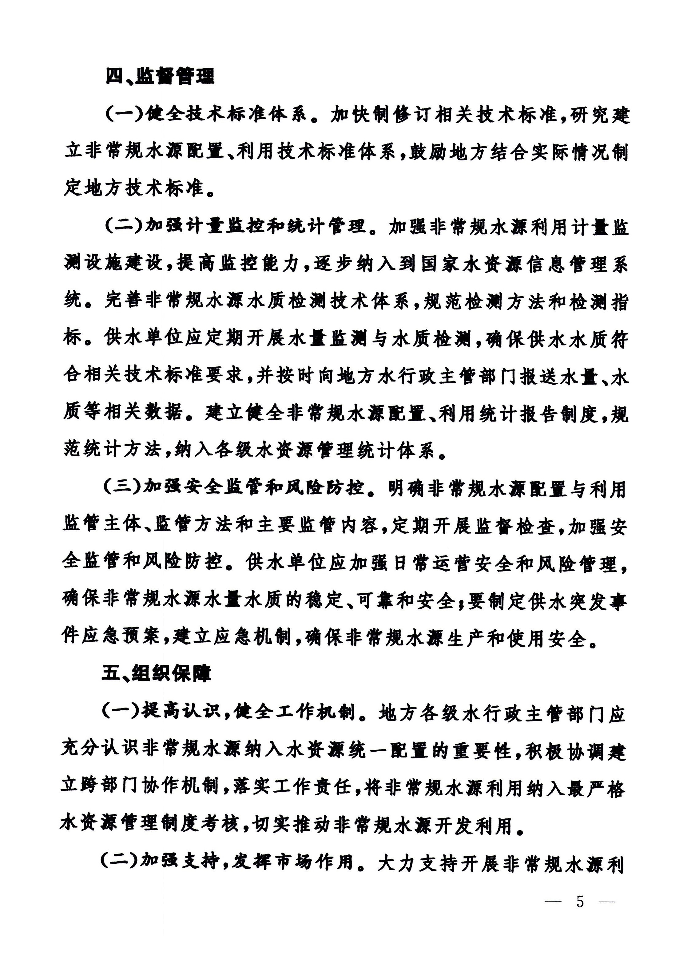 《水利部關于非常規水源納入水資源統一配置指導意見》