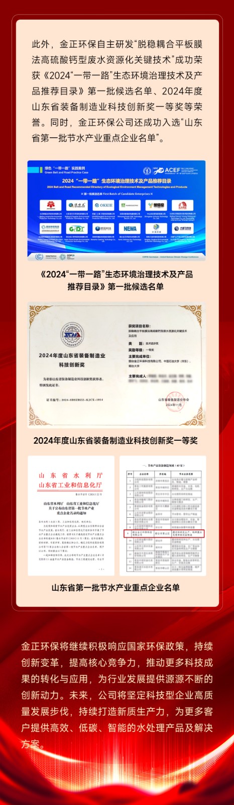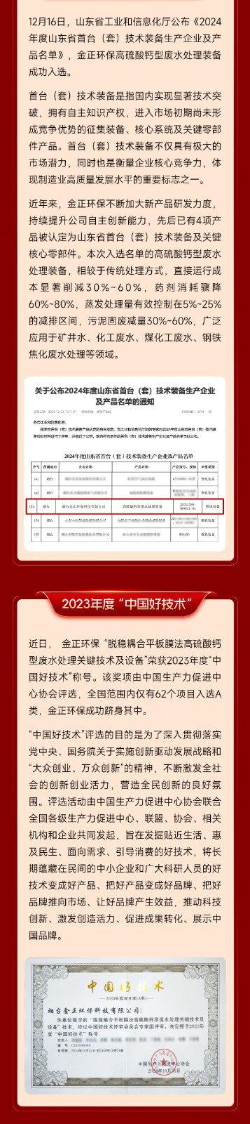 榮耀加冕!煙臺金正環保連獲多項大獎,行業影響力和技術實力再獲認可!